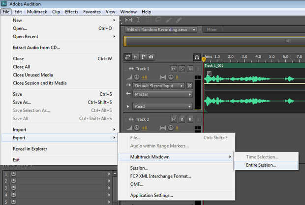 Ahora que ha guardado su trabajo, se puede exportar. Para exportar su pista haga clic en archivo > Exportar > mezcla Multipista > toda la sesión. Una vez que haces eso se abrirá una ventana en la pantalla que te pide algunas opciones. Otra vez no tienes que cambiar nada, excepto el nombre y la carpeta donde se exportarán a la pista. Puedes elegir entre un archivo .wav y un archivo. mp3. Yo siempre uso .wav, si no está seguro de la diferencia hay algunos foros en la web que le dirá la diferencia.