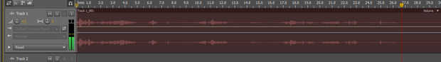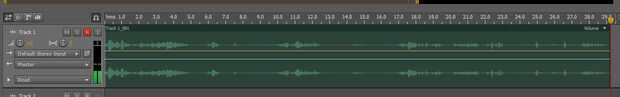 Ahora que está grabando el track, la pista se pondrá roja, y cada vez que hablas o detecta audio mostrará el sonido. cuanto más grande la barra de sonido más fuerte será el sonido.