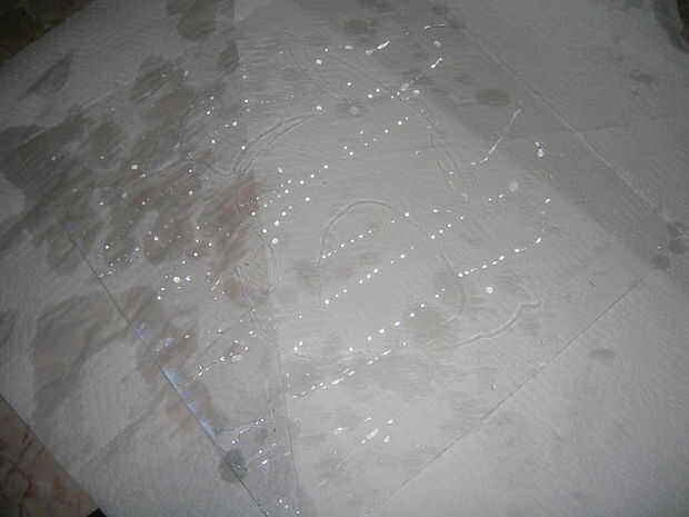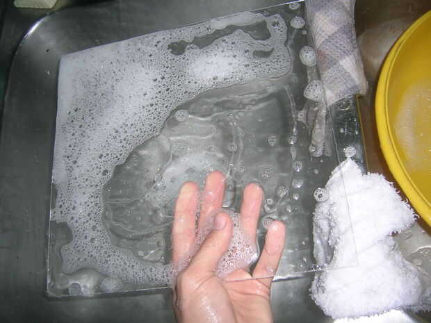 ahora que el grabado se hace tiempo para que el vidrio del plexi se vean lo mejor posible para hacer esto usted necesita calentar no utilice agua caliente, frotar alcohol, windex, jabón, y verde simple (no necesario pero este material es impresionante!!!!) Asegúrese de que se saca la capa protectora de plástico. como se mencionó antes que el agua caliente no es caliente, si el agua es caliente te va a terminar deforme el vidrio del plexi. Ahora mezcla todas esa piensa en un tazón grande las cantidades no son tan importante. ahora sumerja el cristal plexi en mezcla de limpiadores. conseguir un trapo y frotar ambos lados del vidrio plexi después piensas que tienes el plexi de estrella limpio hacer un enjuague suave con water.after caliente y luego fría primera que tomar algunas toallas de papel y los ponen entonces de más toallas de papel y séquelo.