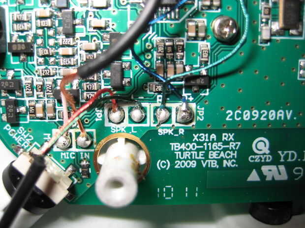 Localizar la izquierda y empalmes en el circuito de la soldadura del altavoz derecho. Se marcaron "SPL_L SPK_R" debajo de las articulaciones y "L + L - R - R +" en la parte superior.