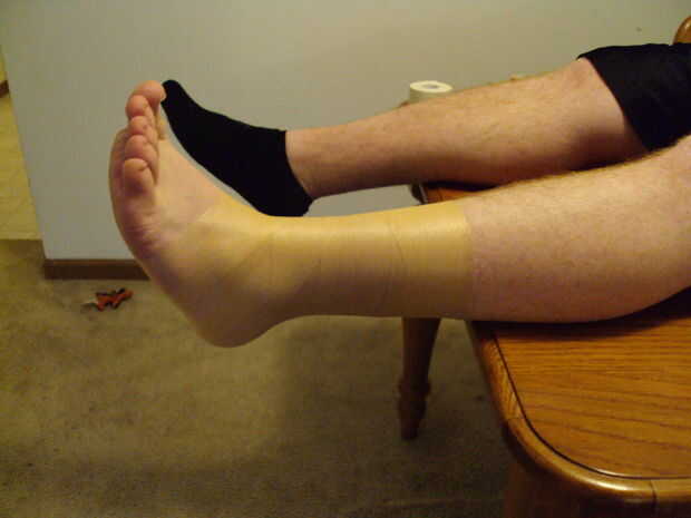 3. una vez en el comienzo de pie, dejar el talón descubierto y abrigo 2/3 la longitud del pie. No debería haber lagunas en la cobertura de la pie y la espinilla excepto el talón. En cualquier área debe solamente haber una capa de prerecogido aunque un traslapo leve es aceptable en al trabajo donde sólo se aplicó prerecogido. No debe luchar con desenrollar la prerecogido, en lugar de ello dejó la prerecogido desenrollar lo que quiere y colocarla sobre el pie/tobillo.