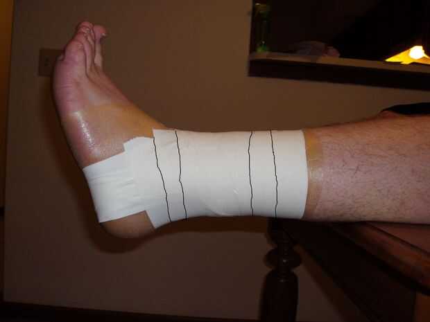 4. arrancar la cinta una vez que todo el camino alrededor de la pierna.