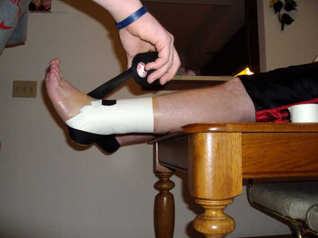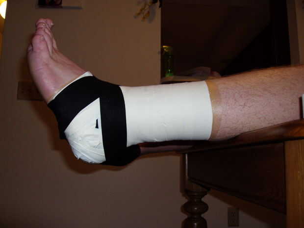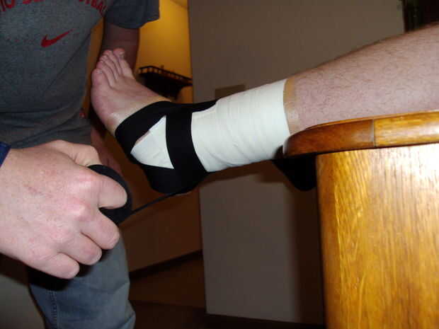 5. Envuelva la cinta alrededor del tobillo hasta llegar a la parte delantera y rasgar la cinta del rollo