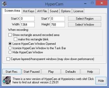 • HyperCam 2 comenzará a tomar un video de la pantalla del ordenador