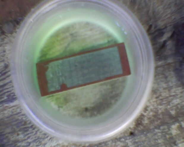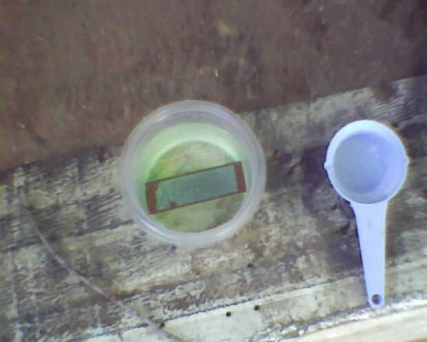 Lo que está sucediendo en la solución es que el peróxido de hidrógeno se oxida el cobre y el ácido muriático es comiendo el cobre. He la manada de que usted puede volver a utilizar esta solución, se utiliza el oxígeno cuando resulta un color pardusco, pero puede Agregar oxígeno a modo de burbujas o añadiendo más peróxido de hidrógeno, que es diluir la solución más porque es sobre todo agua.