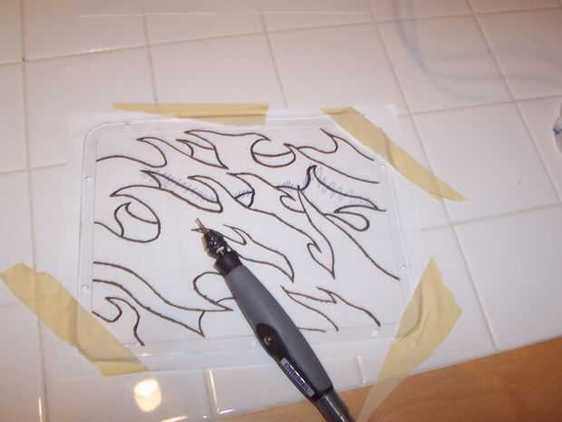 La plantilla para el plexiglás de la cinta para que no se mueva.