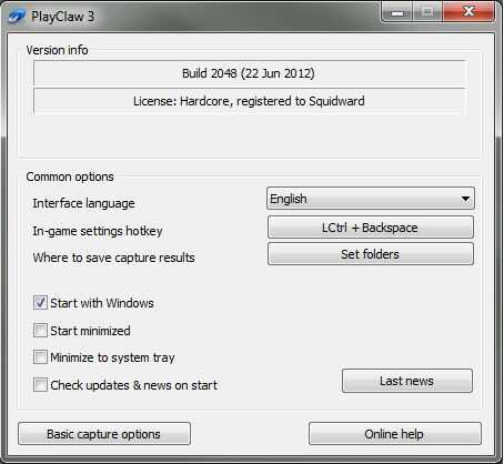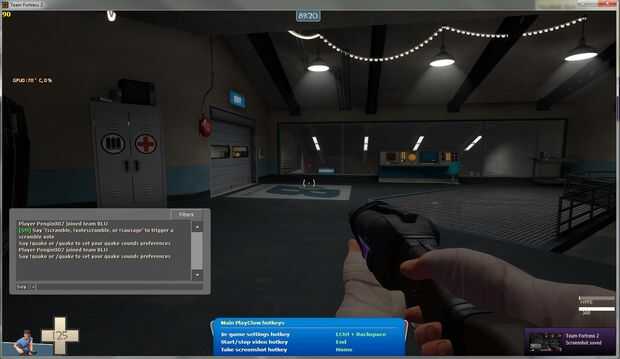 Al empezar el juego de un recubrimiento azul aparecerá en la parte inferior Recordando las teclas básicas y cómo acceder a la plantilla de PlayClaw. El valor predeterminado es acceso + Backspace.
