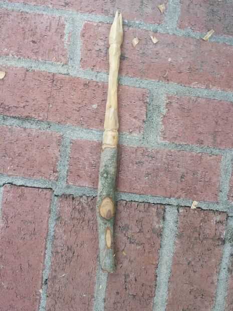Detalle de la horquilla. Sólo hacer ranuras en V y continuar formando la horquilla. Una vez hecha el detalle, se puede lijar, si te gusta el look 'áspero', no de arena.