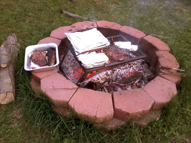 Para viajes de camping y parrilladas patio, hacer un fuego rápido y caliente con una mínima cantidad de humo. Tuvimos nuestra fogata ardiente caliente ~ 20 minutos después recogimos leña y cortar leña en el bosque de árboles en el suelo. Leña y leña
