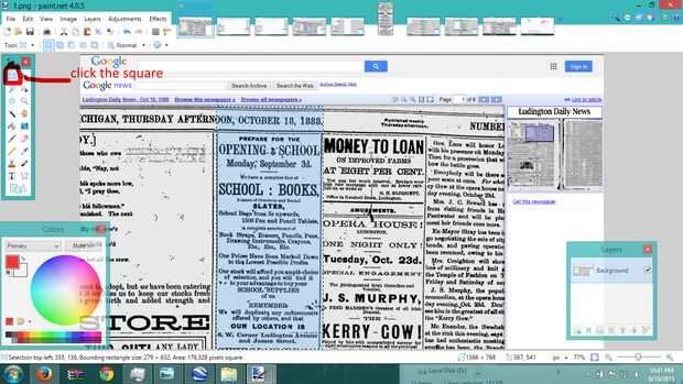 Mantenga pulsado el botón izquierdo del ratón para hacer a la Plaza/frontera el tamaño de la imagen que desea guardar
