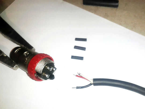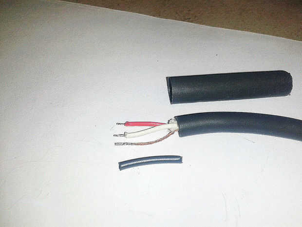 Imagen 3: tamaño y corte de mangas de la tubería para XLR pins 1-2-3 y retirada.