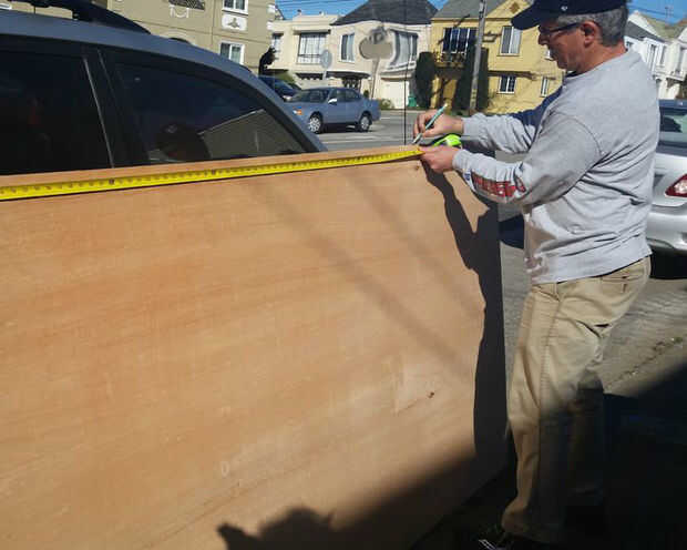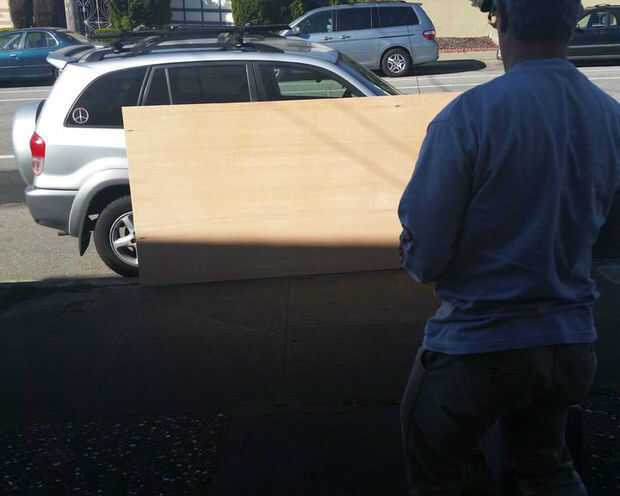 Lo siguiente que hicimos fue conseguir una hoja de madera contrachapada se deslice entre el colchón y el somier. Esto es para ayudar a distribuir el peso (especialmente bueno para personas como yo que dormir compulsivamente en solamente un lado de la cama) y mantener el colchón de la comba.