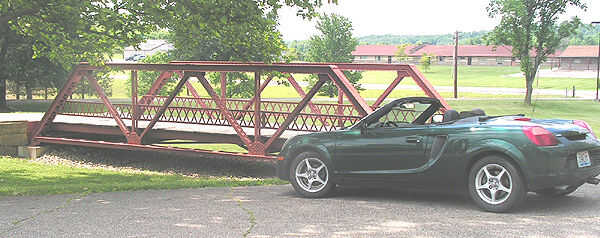 Un poco más robusto y un poco ilegal, también fue construido por la compañía del braguero y Mt. Vernon puente a principios de 1900 donde se utilizó Rt 40, la primera carretera federal costa a costa. Fue diseñado para el tráfico de la carreta que había hecho el caballo y el cochecillo de obsoleto. Es la pieza central del Museo Zane Gray Road en Rt 40 en Zanesville, Ohio. Aquí está una foto de mi pequeño coche delante de él.