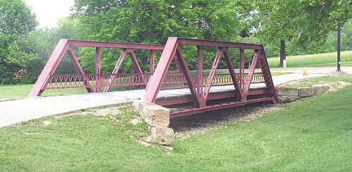 En el transcurso de los últimos 6 años (o menos) hemos tenido varios historiadores puente cazar este puente abajo (se cotiza en varios sitios de la web del histórico puente) y tomaron fotos de ella para sus registros. Uno de ellos me dijo que debo visitar el sólo otro puente braguero de Pratt Pony [de este tipo a la izquierda] en Zanesville, Ohio (hago mención de esto en mi placa). Dijo que me sorprendería gratamente si lo hice. Lo hice y fue; fue pintado en el mismo color que la pinté mi puente en.