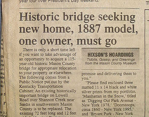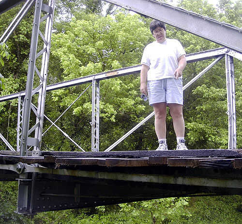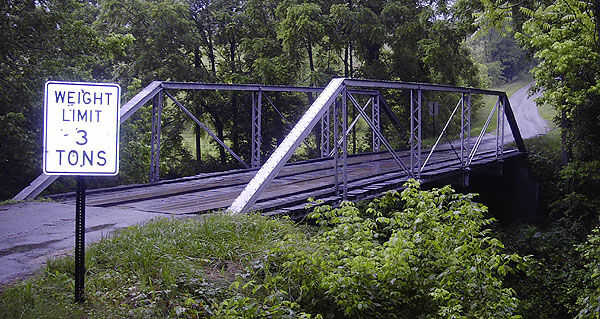 Era un lindo puente poco, unos 15' de ancho por 70'. Construido en 1887, fue el último puente de la cubierta boscosa en Kentucky todavía en uso. Si usted estudia la metalurgia del tiempo aprendes que estaba hecha de hierro, no acero (el acero es hierro con carbono adicional añadido por rigidez). Esto es importante porque el hierro no moho como acero y (a menos que no se permite secar) hierro formas solamente una ligera capa de moho (una ' pátina' si se quiere) y se mantendrá fuerte a lo largo de los años; mientras que el acero (si dejó al aire libre sin protección) eventualmente se escama aparte. (Este pequeño puente también fue diseñado para el caballo y el cochecillo por lo que probablemente fue hecha de rifles fusil abajo derretido de la Guerra Civil).
