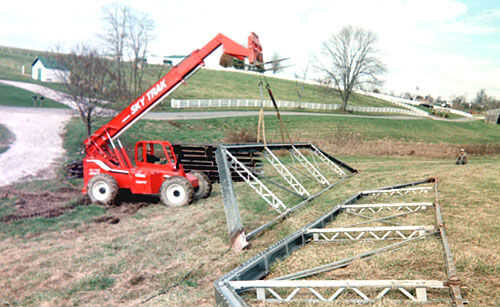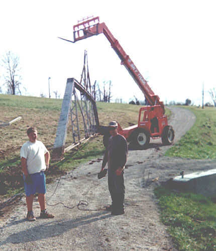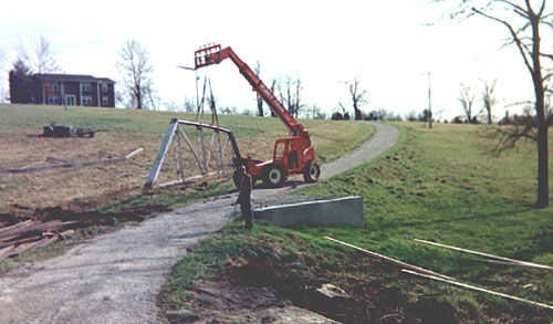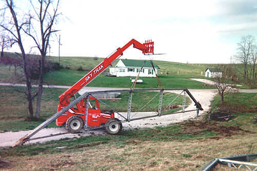 Con la impulsión 4-wheel, telescópica grúa elevadora en sitio, el recién formado 'antiguo puente reconstrucción Corporation' comenzó a recoger y poner el primer truss en lugar. Matt Hunt y mi hijo, Wylie, forman la mayor parte de mi equipo de construcción mientras que la esposa-unidad funcionó al entrenador roach (un ATV con un refrigerador en la parte posterior) para el apoyo nutricional y moral.