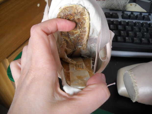 Si los zapatos no tienen las uñas, a rasgar el pegamento y volver a pegar después de poner los tallos. Si tienen las uñas, debe abrir las uñas y luego les hacia atrás del martillo.