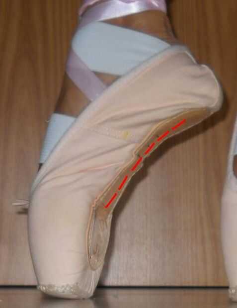 La línea roja en la foto es donde la madre. Puede romper el zapato donde termina. El tallo es flexbile y le dará el pie más apoyo porque hará que el zapato único más difícil.