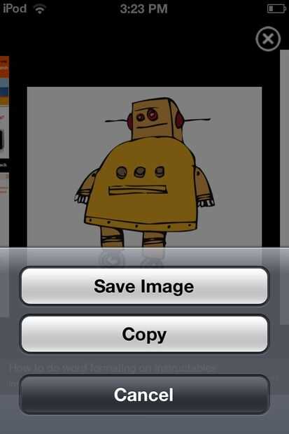Paso 1: Haga clic en Safari Clic en safari como usted normalmente haría.Paso 2: Buscar la imagen que deseaPaso 3: Haga clic en la imagen que desea Haga clic en la imagen que quieras y mantenga en él y te dará la opción de guardar.