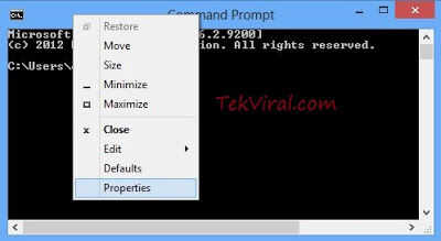 Paso 2: Haga clic derecho sobre el título de la ventana CMD y seleccione propiedades como su muestra en la imagen de arriba