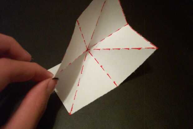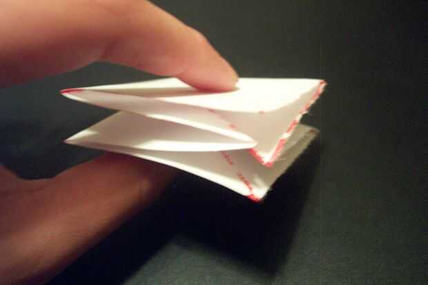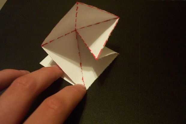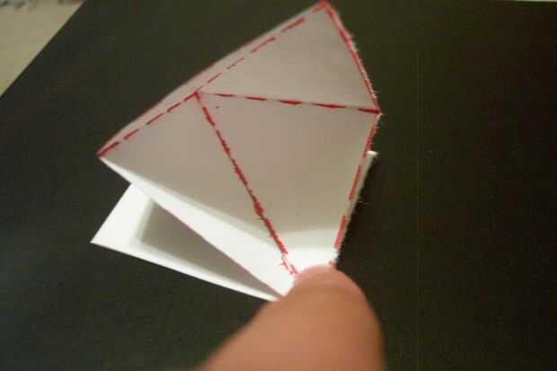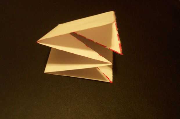 2. doble la esquina izquierda a la esquina inferior... Usted no todavía será capaz para aplanarla. Mantener la figura no plana.