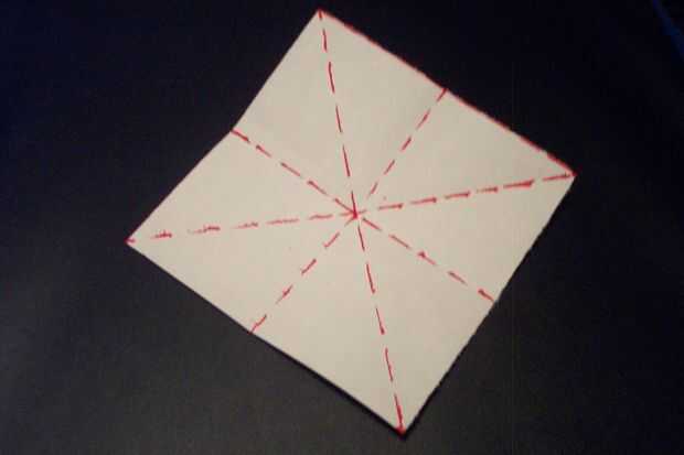 1. no doblar preliminar. Pliegue de esquina a esquina y de borde a borde. (véase el cuadro para visual)