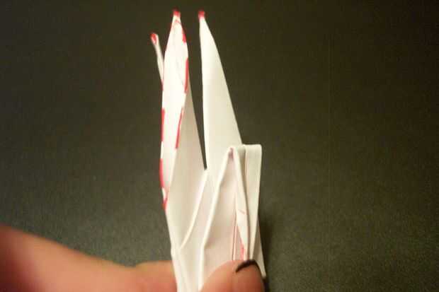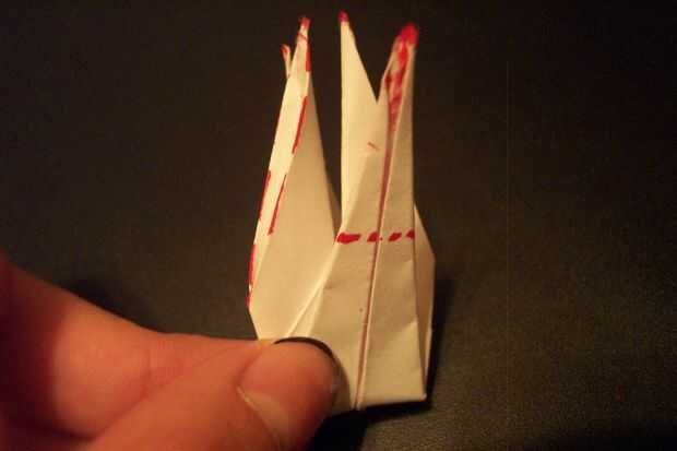 4. Tire del cuello y la cola hacia fuera y presione en la zona inferior para hacer un nuevo doblez en la articulación.
