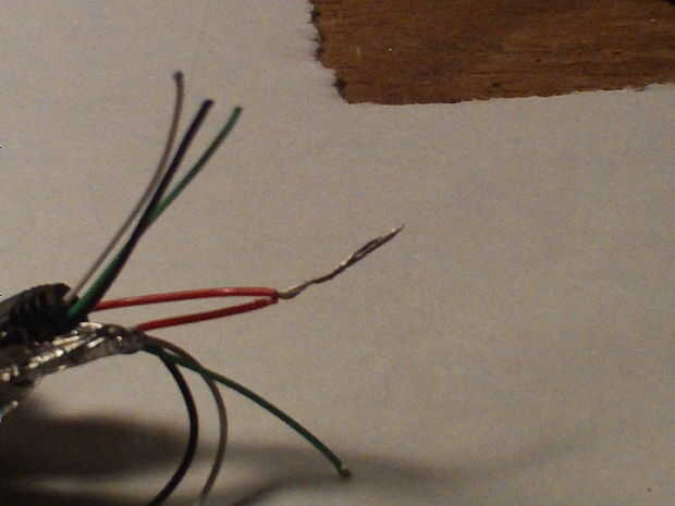 Después de pelar todos los cables, debe ser de izquierda con 3 blancos, 3 negro, 3 rojo y 3 alambres verdes.
