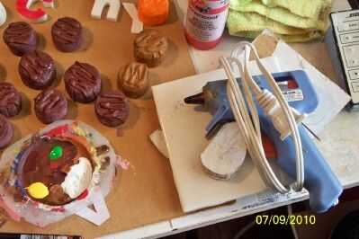 Para imitar las formas chocolate en dulces, pegamento del derretimiento en la parte superior de las piezas.  Es fácil de imitar la forma de chocolate se vierte a bordes de la forma de las piezas.