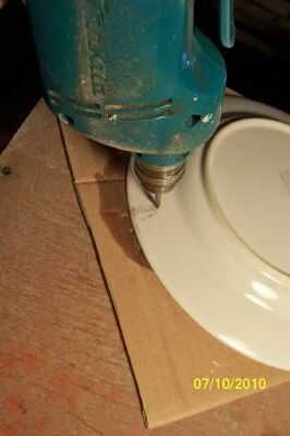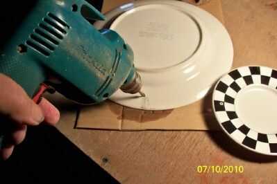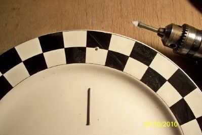 Quería ser capaz de mostrar mi "caramelo" lo decidido en una pieza que podría ser colgada en la pared. Necesita una placa y había algunos práctico (venta de garage los hallazgos). Para perforar un agujero en la placa, he utilizado la broca de corte de vidrio en un ejercicio regular. Es lento que va, pero en el tiempo, el agujero se ha completado.