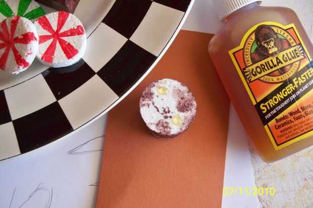 Arreglar el caramelo en el plato y pegamento usando el pegamento del gorila... este material es increíble, no tanto por su resistencia, sino por su capacidad unir dos materiales dis-similares. Deje que se seque, entonces el proyecto es completo y listo para colgar!