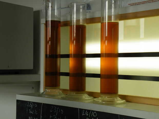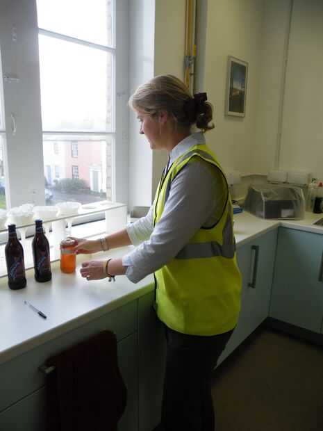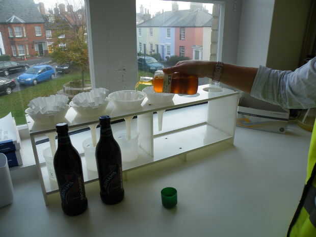 Las muestras son tomadas a lo largo del sistema y monitoreadas. Torundas son tomadas regularmente para verificar la incursión microbiana (Recuerde que esta cerveza no es pasteurizada, por lo que todo el sistema debe estar escrupulosamente limpio).
