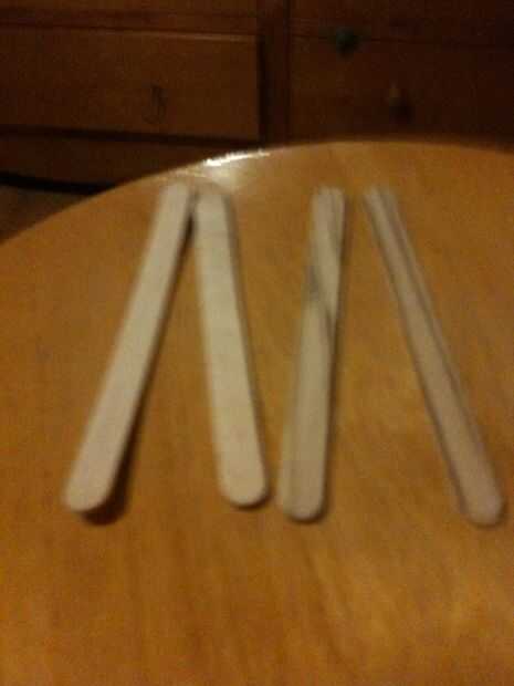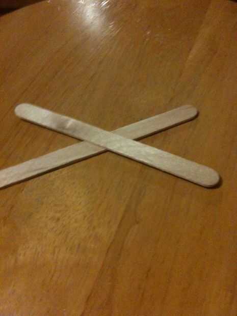 Se necesita 4 palos por esto. Haz dos palos y se superponen, como en la foto.