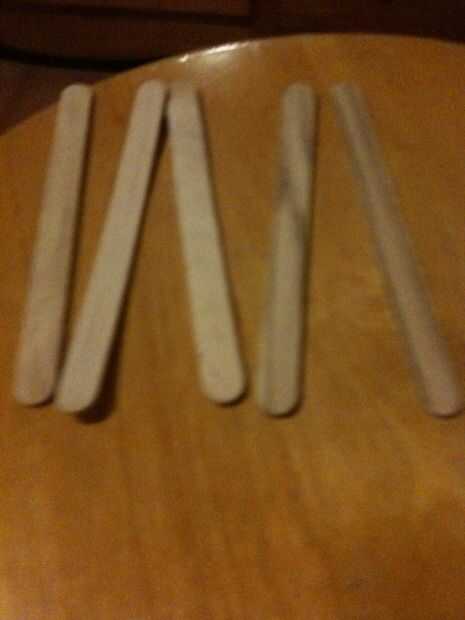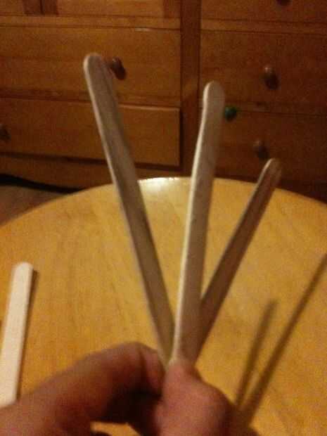 Se necesita 5 palos por esto. Haz 3 palos y extienda para que se peguen detrás empuja a la izquierda, los pokes de medio palo a la derecha y el palillo superior se queda estrecho para arriba. Este es un paso assential.