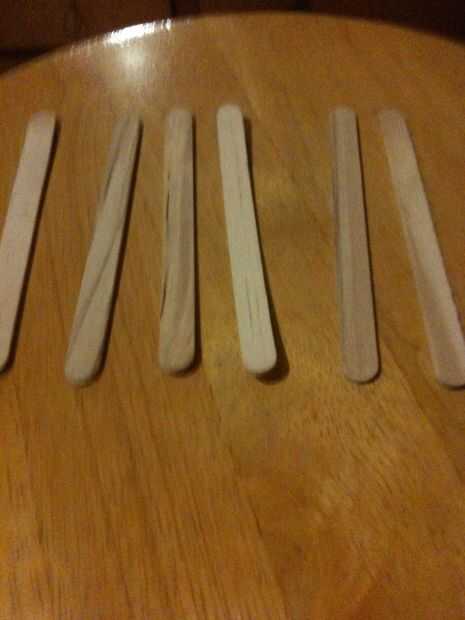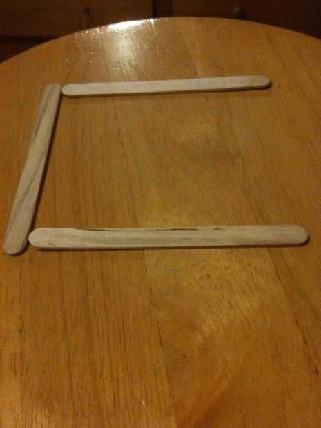 Se necesita 6 palos por esto. Poner 2 palillos horizontalmente, luego coloque otro palo en la parte superior, en posición vertical.