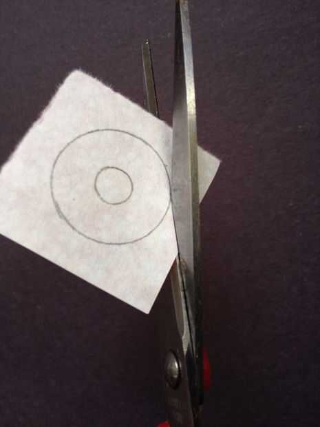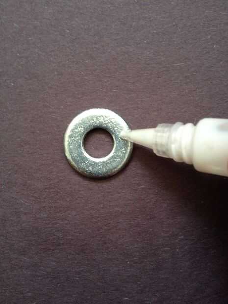 Recortar el diseño. Asegúrese de cortar también el centro, que se puede hacer ligeramente doblando el círculo por la mitad y luego corte. A continuación, conéctelo a la lavadora con algun pegamento. Lijar la superficie de la lavadora puede ayudar a la barra de la cola mejor en la lavadora.