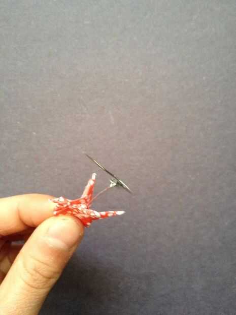 Empujar el cable por el colgante de origami en un área donde permanecerá segura, pero no arruinar el colgante. Luego, gire el extremo y fijarlo para que el gancho no se caiga. Si utiliza cadena, entonces la cadena del hilo de rosca en una aguja y colócala en el colgante y un nudo, manteniendo el pendiente y enganchar juntos.