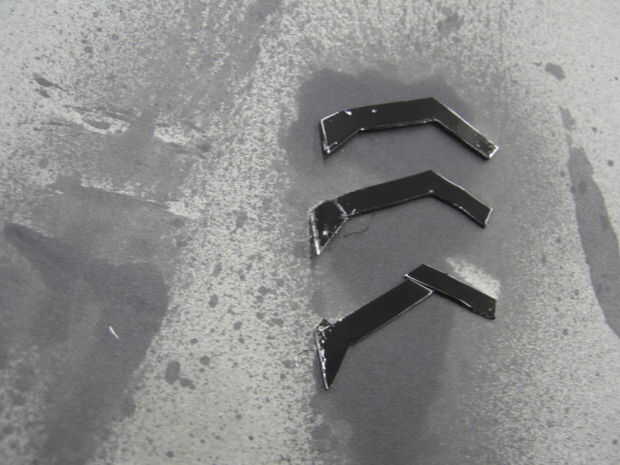 2. Cortar 3 formas de garra de una fina lámina de plástico y pintura de aerosol les negro (forma que se muestra en la imagen)