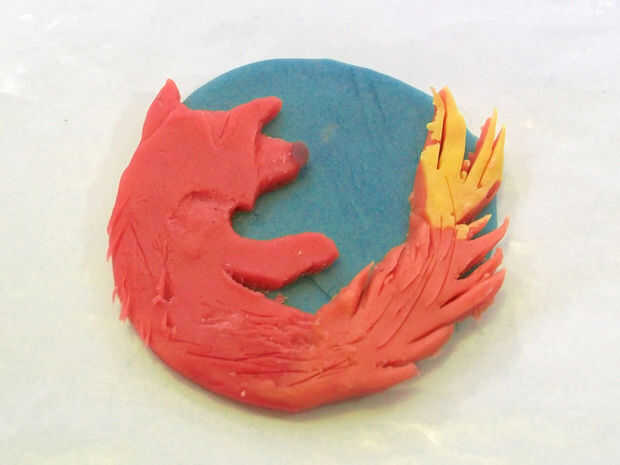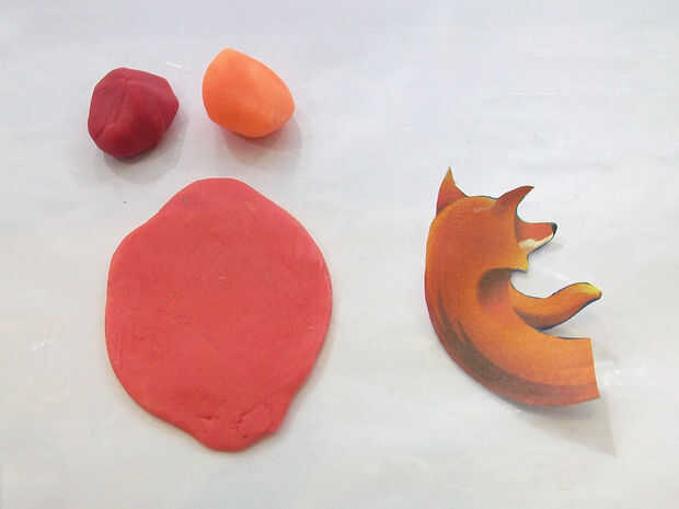 Imprimir el logo de Mozilla Firefox, Google sólo se. Luego corte el logo con tijeras. Cortar el cuerpo del zorro y la cola de manera separada. Hacerlo perfectamente.