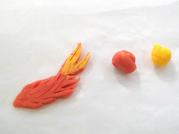 Todavía utilizamos el color redrange para hacer la cola. Mezclar el redrange con un poco de yellorange de color en el extremo de la cola. Lo hice por efecto del fuego. Pero como una cola de pez de oro. JAJAJA (ver imagen 3)