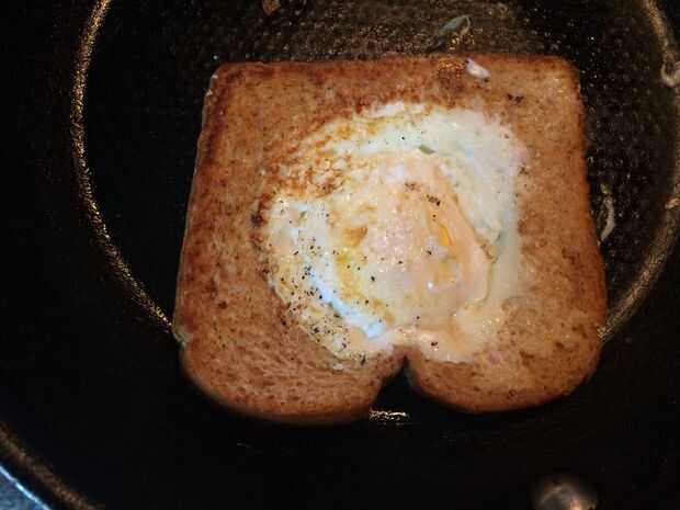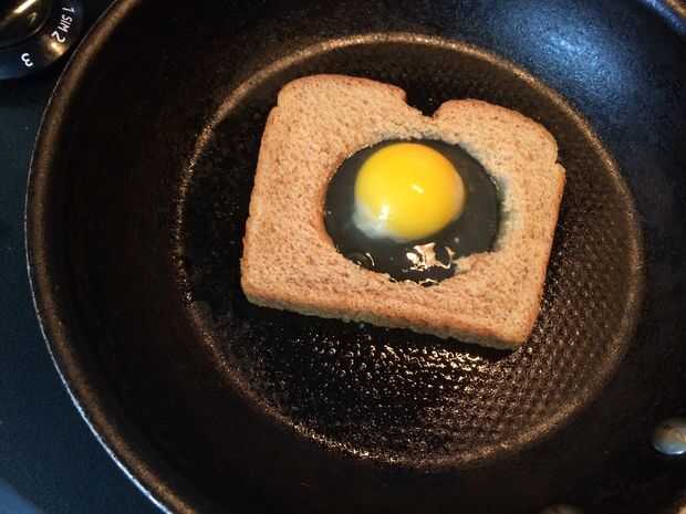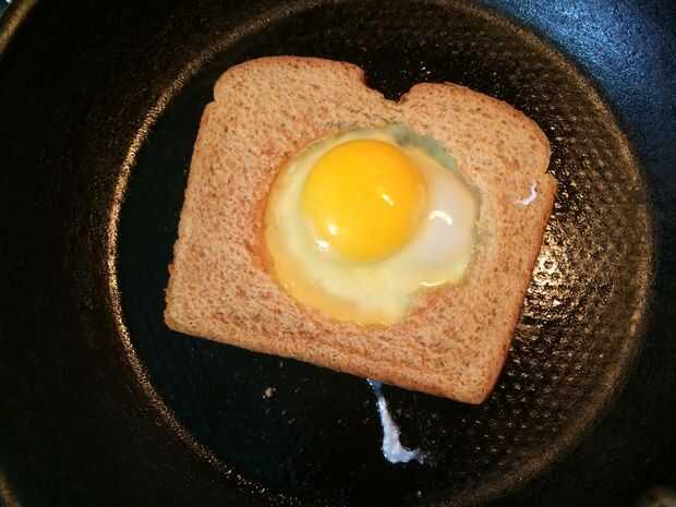 Creo que es mucho mejor disfrutar el huevo si la yema no es reventada pero es una preferencia personal, entonces, hacer lo que desee. Es bueno para mojar los agujeros sobrantes del pan.