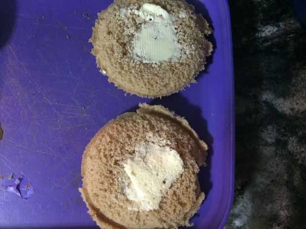 Aquí viene probablemente la parte más fácil de cocinar esto. Los agujeros. Todo lo que tienes que hacer es poner alguna mantequilla o aerosol de cocina en el pan y dejar tostar. No tiene que ser perfecto, siempre y cuando usted está contenido comer todo lo que cocines.