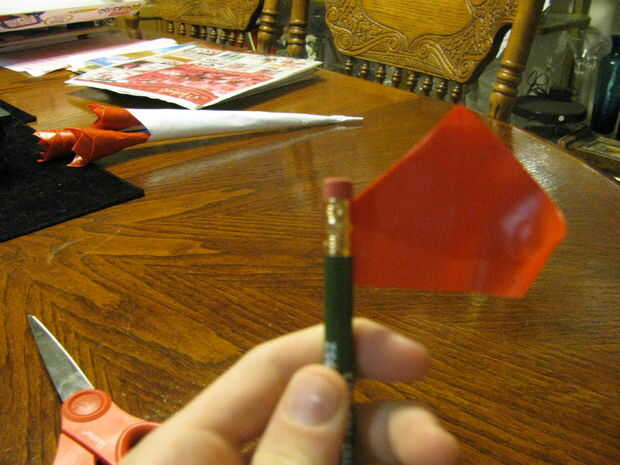 Corte tiras de unos 3-4 pulgadas de largo, doblar en un triángulo como se muestra a continuación en el cuadro. Luego Envuelva el vendaje alrededor del lápiz y obtendrás el resultado como en la foto.