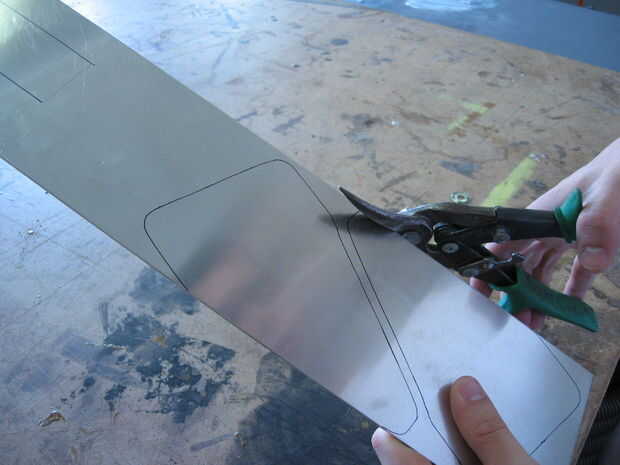 Para hacer un spoiler muy dulce para carrito G, necesitarás algunos aluminio de hoja, un taladro, un metal taladro tijeras para poco, metal / metal Sierra de cinta, remache pistola, remaches, marcador de lápiz y un borde/regla recta. En primer lugar, marcan su diseño en el metal con su lápiz o marcador. Luego, cortar su diseño/patrón con el hojalatero (o una sierra si su más grueso). Asegúrese de ver los bordes del material cortado, ya que puede ser extremadamente agudo (puede usar guantes). entonces usted necesitará perforar en los puntos de conexión para remaches. Básicamente, esto actuará como un tornillo que solo une las dos piezas de metal de hoja, y conservará un agradable acabado. Usar el arma de remache para colocar los remaches.