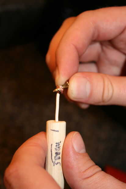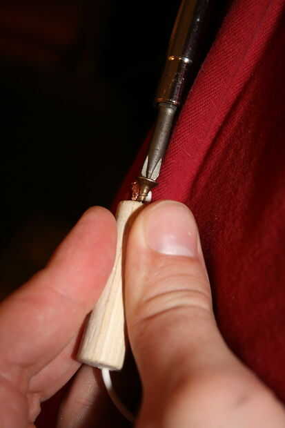 Con el alambre a través de la espiga y despojado al final, puede envolver el alambre alrededor del cuerpo del tornillo. Es importante que usted Envuelva las agujas del reloj visto desde arriba (o hacia la izquierda si tiene una rosca inversa rara). Esto hará que cuando usted conduce el tornillo, realmente traerá el alambre, envolver más estrictos. Si usted ajusta la otra manera, el tornillo realmente Desenrolle el cable como usted conduce.