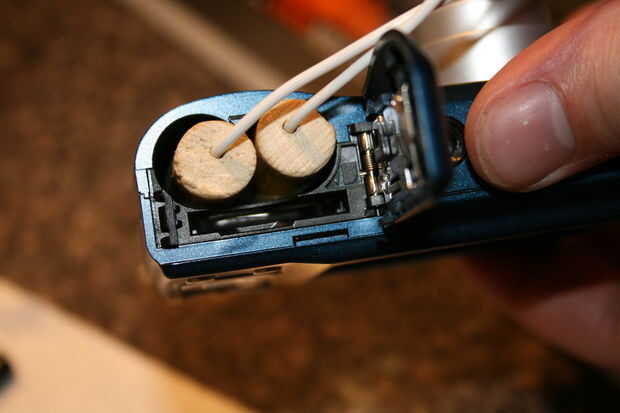Es probable que usted tendrá que mantener las baterías en lugar de b y c la puerta voluntad probable no b y c de los cables. Para solucionar esto, me dremeled una pequeña muesca en la tapa para dar cabida a los cables sin representación la puerta inútil. Después de todo, no quieren mantener estas baterías en todo el tiempo que estoy escaneando documentos. También, mi modificación fue tan leve que es apenas perceptible y todavía permite la cámara para pilas. Ampliado la función de la cámara en lugar de cambiarlo.