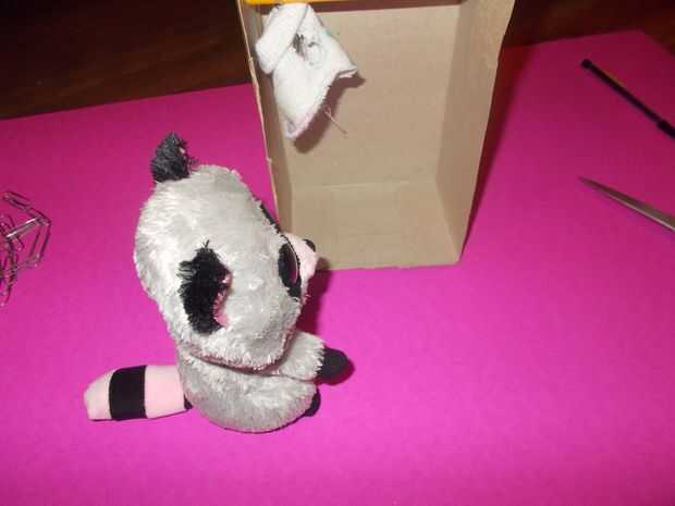Listo! Aquí está mi mapache, Micheal, él solo colgó su suéter! En mi siguiente instructivo, te enseñaré cómo hacer un estilo diferente de suéter!