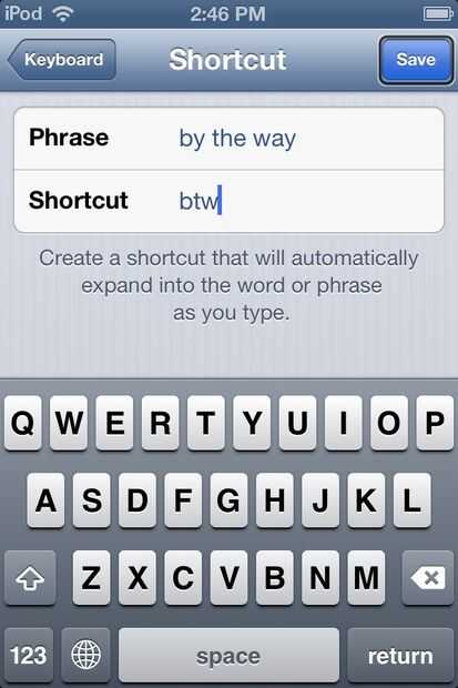 5. ahora escribe tu frase y luego el acceso directo para esa frase particular. (imagen 5)