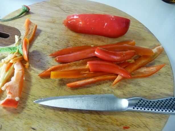Cortar los pimientos por la mitad, elimine las semillas y picar grueso. Necesitarás aproximadamente 1/2 taza.