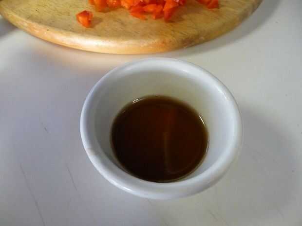 Medir el aceite de sésamo en un plato pequeño. Ponga a un lado.
